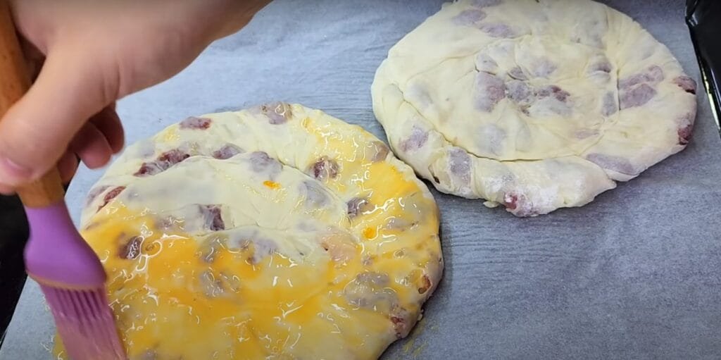 - Kiekvieną pyragą patepkite trynio ir pieno mišiniu, kepkite 180℃ laipsnių orkaitėje 35-40 minučių.